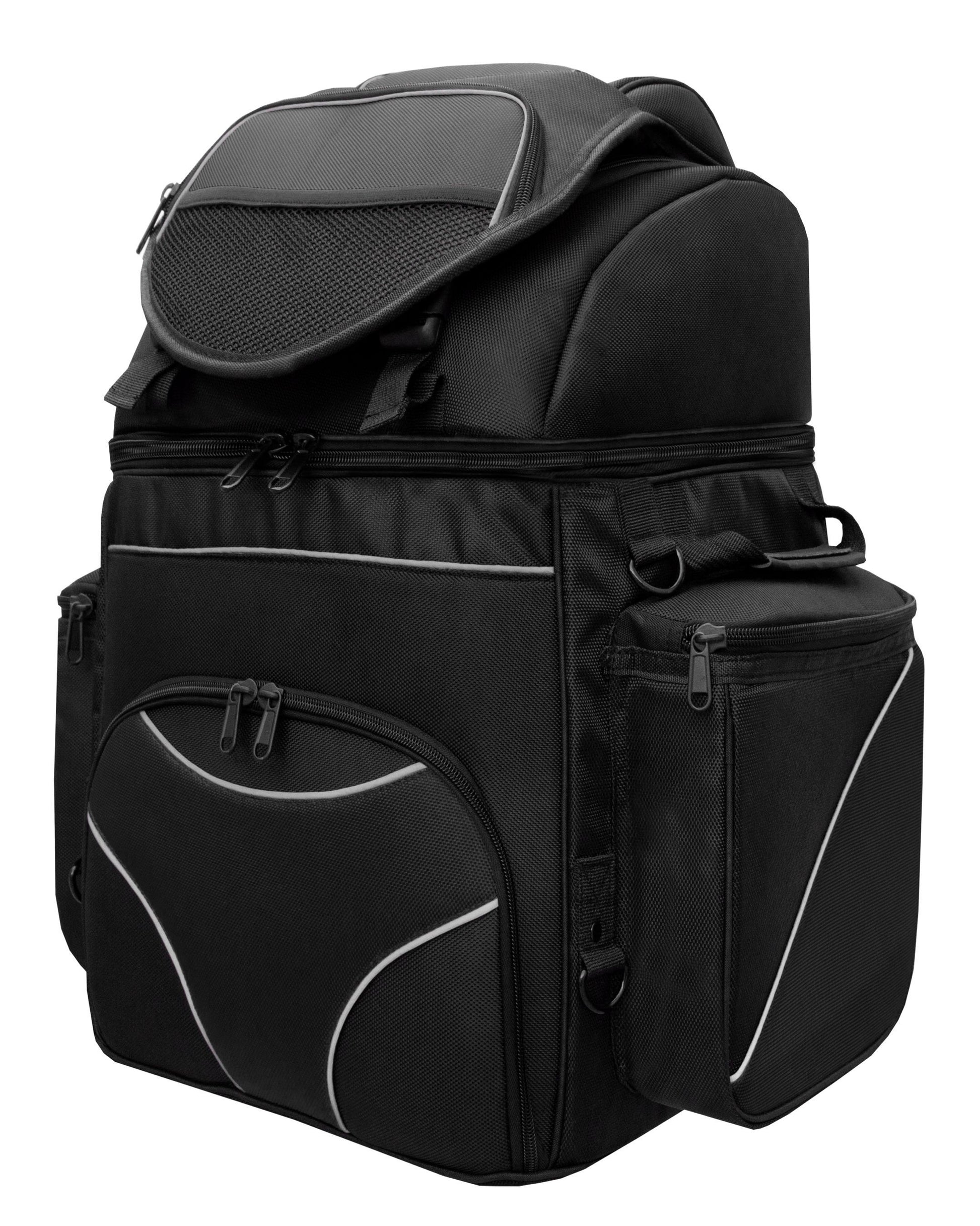 - Adjustable sissy bar strap system that easily attaches bag to your motorcycle's seat, luggage rack or sissy bar