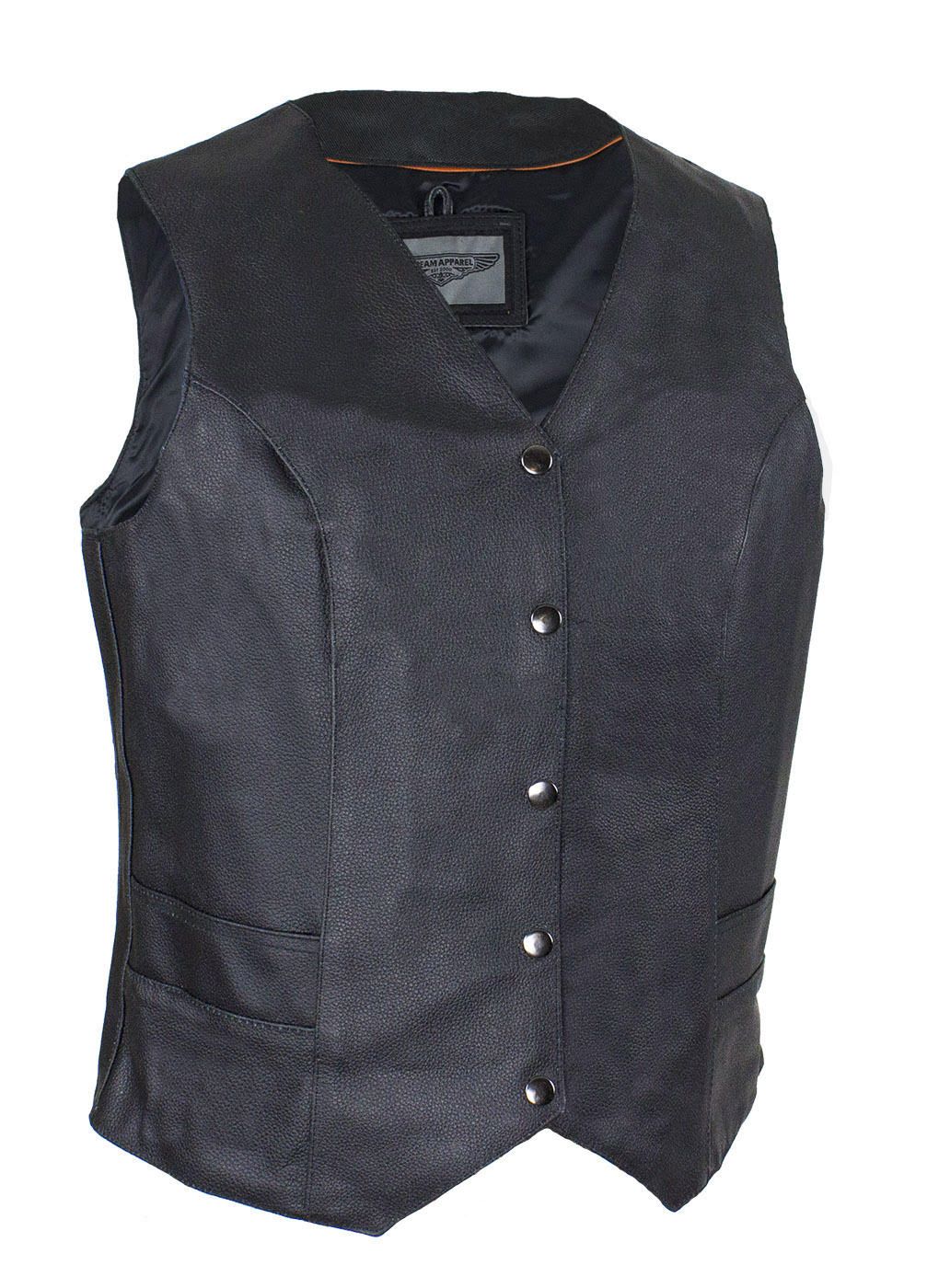 Our womens leather vest features a zip up, two inside pockets and two outside pockets. Side laces and the lower back can be adjusted for comfortable fitting. This is the only women's leather vest that features huge gun pocket.