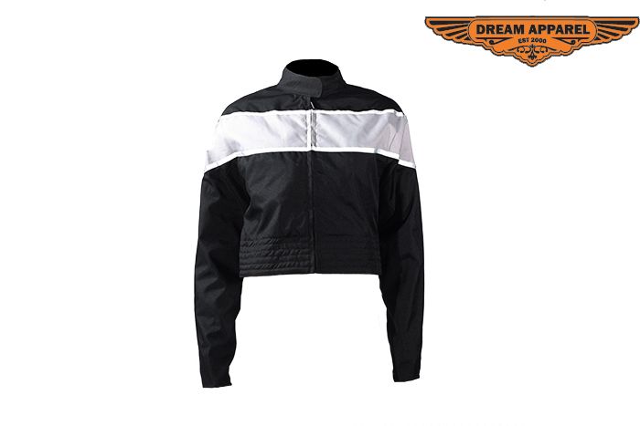 Ladies, this ones for you. Dream Apparel brings to you our beautiful black textile jacket with a thick white stripe across the chest and back. The lightweight aspect makes this jacket very comfortable as well as great on the go. The increased maneuverability is definitely a plus. Along with that, this jacket is a very stylish option for the ladies. Inside the jacket, regular and zipout lining can be found. Lastly, the racer style collar really gives this jacket a more eye caching look. This jacket is a must have for all, so do yourself a favor and be the talk of the room.