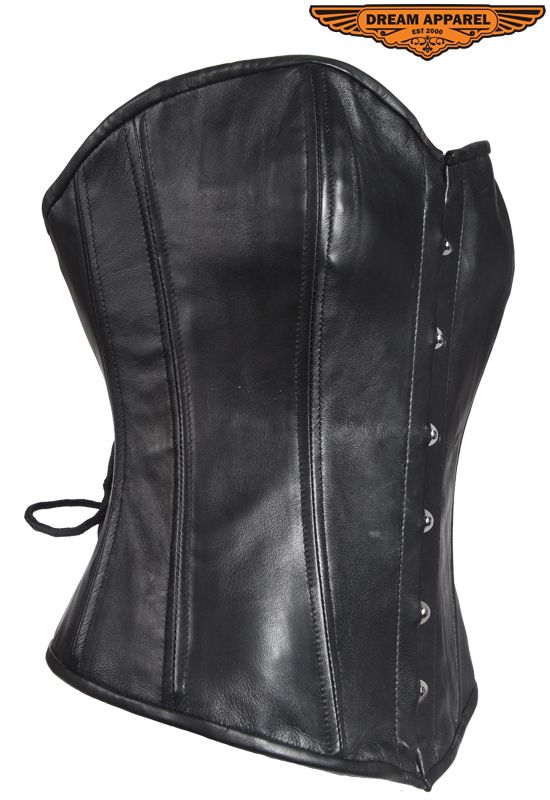 Womens Strapless Lamb Leather Corset With Metal Busks & Grommets